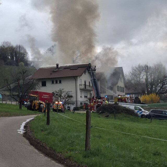Beschreibung: Am Montagnachmittag kam es in der französischen Nachbargemeinde Leymen zu einem Brand in einem Wohnhaus. Wir wurden zur Unterstützung der Feuerwehr Leymen alarmiert.